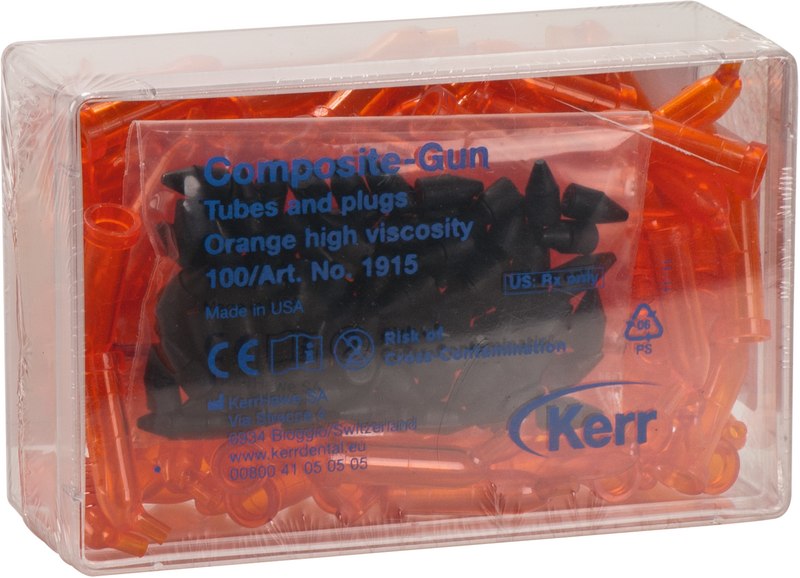 Die vielseitig anwendbare Pistole für blasenfreie Applikation von Füllungs- und Befestigungsmaterialien. Die verschiedenen Spitzen zur Composite-Gun bieten ein breites Spektrum an Einsatzmöglichkeiten wie z. B. die Applikation von Füllungsmaterialien, Liners, Befestigungszementen usw. Die Vorabfüllung der Materialien in die Spitzen (lichthärtende Materialien in die orangen Spitzen) und deren Kennzeichnung durch die farbigen Kappen ergibt eine Zeitersparnis während der Behandlung. 35883 für alle chemischhärtenden Materialien. 35884 orange low viscosity für gering viskose Materialien, speziell lichthärtende Composites. 35885 orange high viscosity für viskose Materialien, speziell lichthärtende Composites. 35886 orange mit Kanüle für gering viskose Materialien, ideal für beengte Verhältnisse/Kavitäten. Nadel beliebig biegbar. 35887 grau für Großanwendungen wie Compositaufbauten, geeignet für viskose Materialien (60 % mehr Spitzeninhalt, größere Öffnung). 35888 schwarz für alle lichthärtenden Materialien. 35889 Kappen für Composite-Gun-Spitzen und Kolben, in 8 verschiedenen Farben, zur Kennzeichnung vorabgefüllter Spitzen.