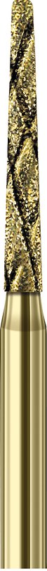 Die Oberfläche der COOL-DIAMANT-Schleifer ist durch asymmetrisch sich kreuzende Kanäle unterbrochen. Diese diamantierten Kanäle können zum einen eine erhöhte Menge Kühlflüssigkeit transportieren und unterbrechen zum anderen den Schleifvorgang bis zu 7 mal bei jeder Umdrehung des Schleifers. Beides fördert einen kühlen Schliff.