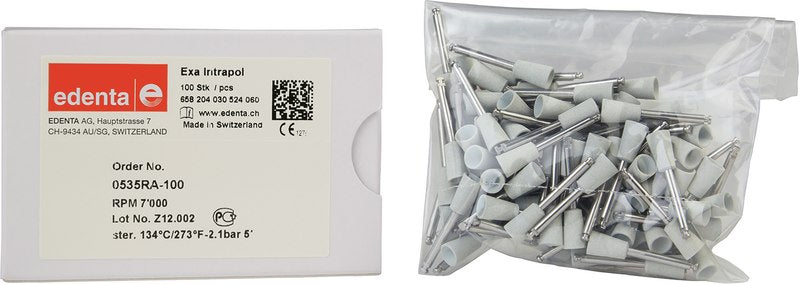 Universal-Polierer für Kunststoffe. Für einen seidigen und langanhaltenden Oberflächenglanz. Polierer-Formen: Kelche – Politur konvexer Flächen und der Fissuren, dank der feinen Kante interdental. Flamme und Spitzen – Politur konkaver Flächen, insbesondere auch okklusal. Disc – Politur konvexer Flächen, insbesondere auf Glattflächen der Frontzähne.