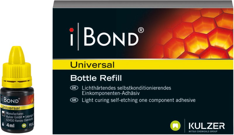 - Der Alleskönner in Sachen Bonding: iBOND® Universal ermöglicht das Bonden von Kompositen/Kompomeren, Edelmetall, NEM, Zirkonoxid oder Silikat-/Glaskeramik. Es ist kompatibel mit licht-, dual- und selbsthärtenden Materialien und benötigt keinen zusätzlichen Dual-Cure-Aktivator