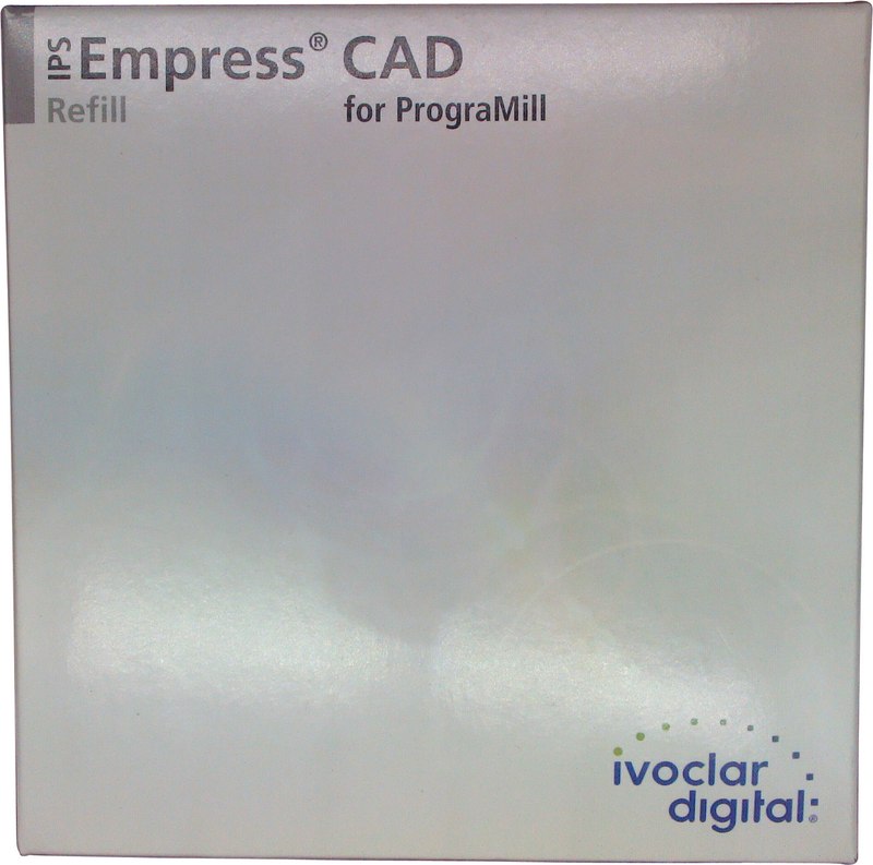 IPS Empress® CAD sind bewährte Leuzit-Glaskeramik-Blöcke für die effiziente CAD/CAM-Herstellung vollkeramischer Einzelzahnrestaurationen. Neben Blöcken mit hoher und mittlerer Transluzenz gibt es polychromatische Multi-Blöcke mit natürlichem Farb- und Fluoreszenzverlauf, die keine Charakterisierung erfordern. Nach dem Nassschleifen in einer PrograMill CAD/CAM-Maschine wird die Glaskeramik mit ihren brillanten lichtoptischen Eigenschaften (Biegefestigkeit 185 MPa*) lediglich poliert. Alternativ können IPS Empress® CAD - Restaurationen mit Malfarben charakterisiert oder mit Schichtmassen verblendet werden.