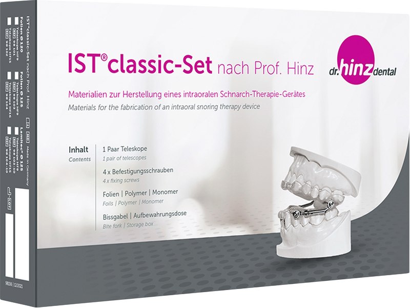 Das IST®classic-Gerät ist das herkömmliche Gerät. Hier werden die Teleskope lateral im Oberkiefer Molarenbereich und im Unterkiefer im Bereich der Eckzähne befestigt. Das Set besteht aus zwei Führungsteleskopen, wählbar aus 2 verschiedenen Längen und Befestigungsschrauben, Kunststoff, einem Sicherheitsschlüssel, einer Aufbewahrungsdose für den Patienten sowie einer Bissgabel zur kontrollierten protrusiven Einstellung des UK.