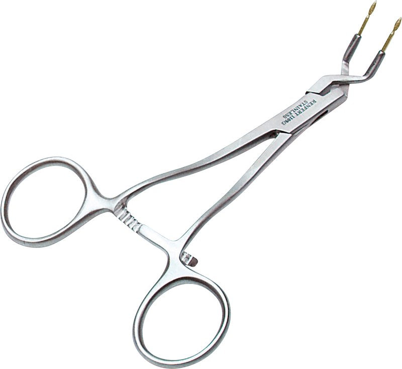Halteinstrument für Kronen und Brücken bei keramischen oder kunstofftechnischen Arbeiten.