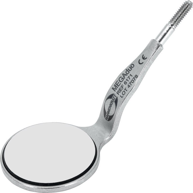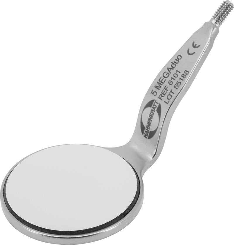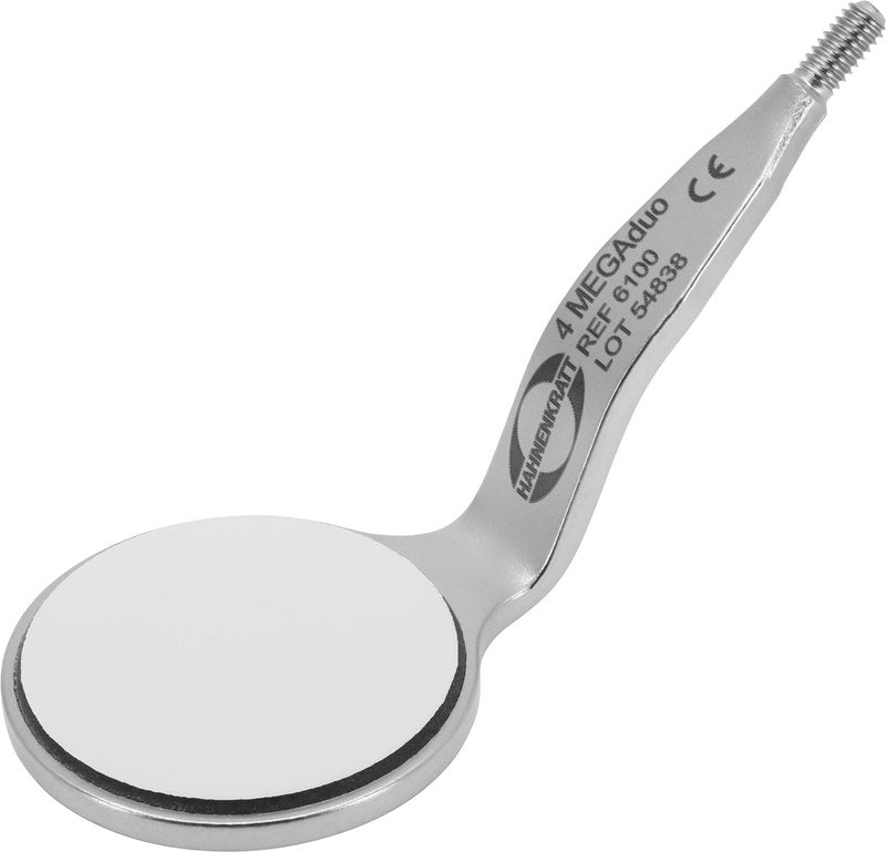 Das Abhalten der Wange wird durch den breit geformten Stiel verbessert und für den Patienten angenehmer. Nimmt im Mund wenig Raum ein, da schlank im Design. Hygienisch, da es keine Schweißstelle mehr gibt, um die sich Ablagerungen bilden können. Reflektionsarme Oberflächen durch seidenmattierten Edelstahl.