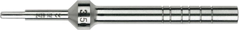 Gewinkelt = Zum Kondensieren von Knochenmaterial und/oder autogenem Knochen unter dem Sinus. Verringert die Gefahr einer Perforation der Schleimhaut bei Sinusbodenelevationen auf ein Minimum.