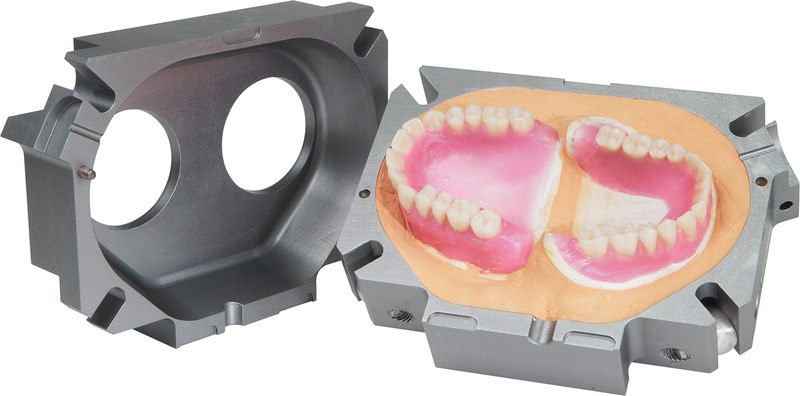 Doppelküvette für Palajet. Zwei Prothesen in einem Arbeitsgang herstellen und gleichzeitig polymerisieren – ist kein Problem mehr mit der Palajet duoflask in Kombination mit dem Injektionsgerät Palajet.
