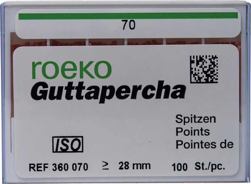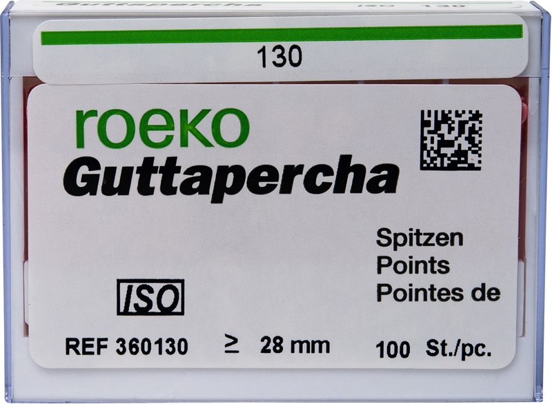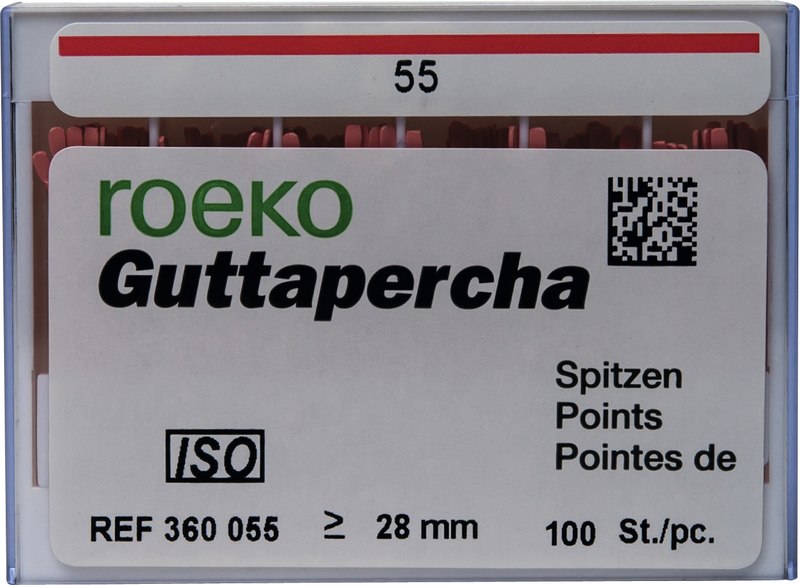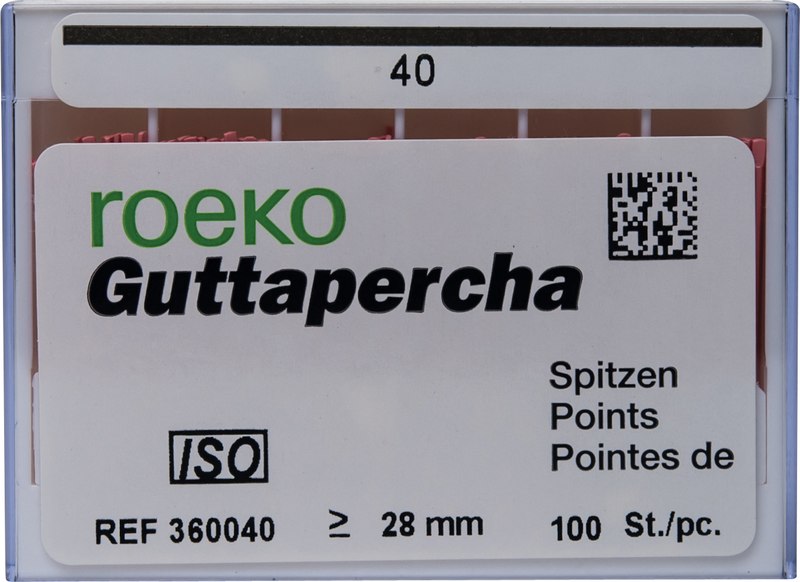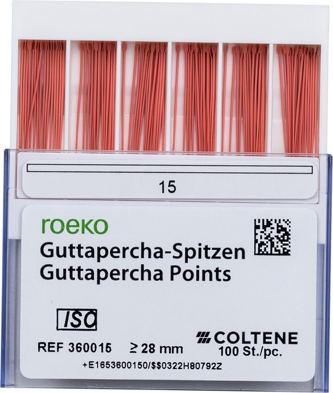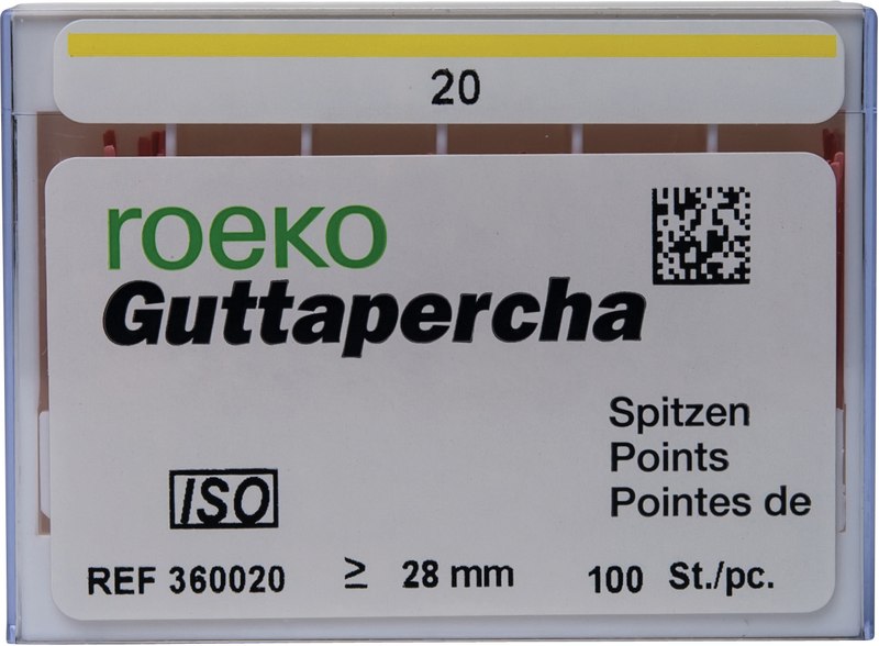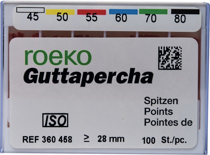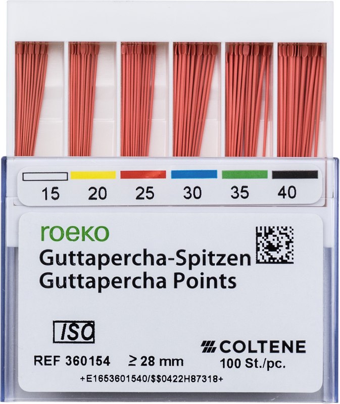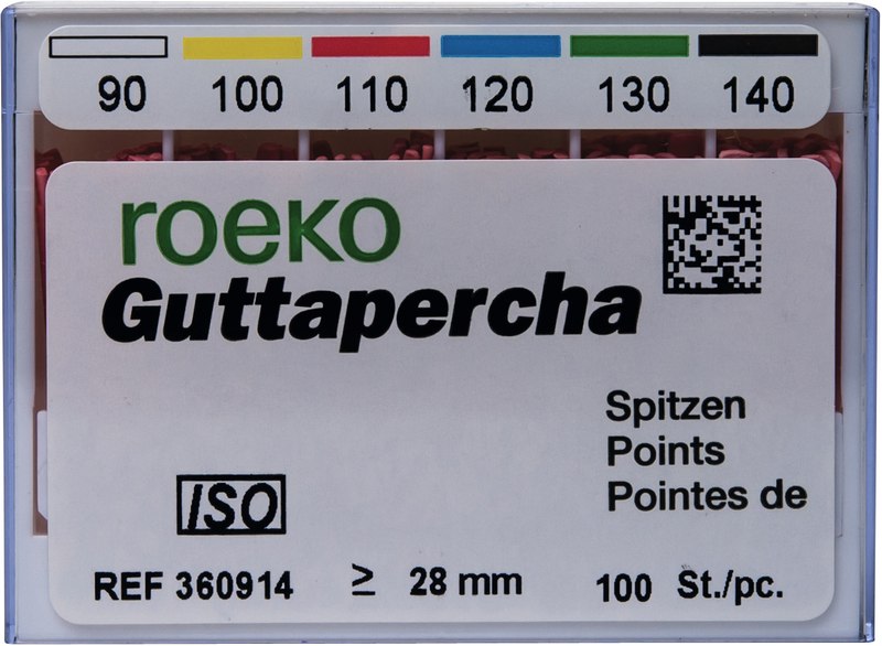 roeko Guttapercha Spitzen sind ideal für laterale, vertikale und Wärme-Kondensationstechniken für eine perfekte dreidimensionale Füllung des Wurzelkanals. Sie werden vollautomatisch hergestellt, sind absolut maßhaltig und einfach zu applizieren.