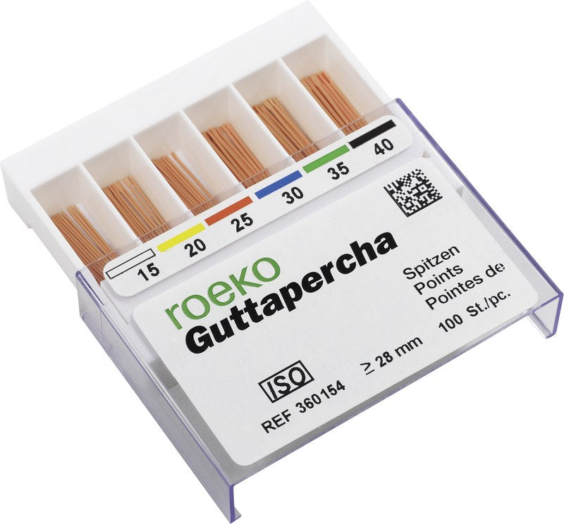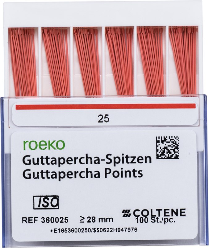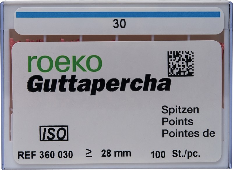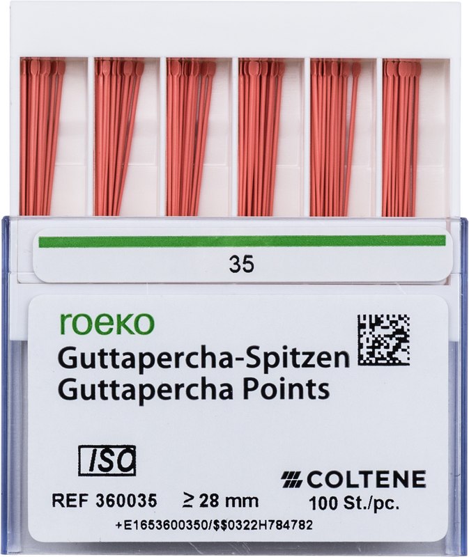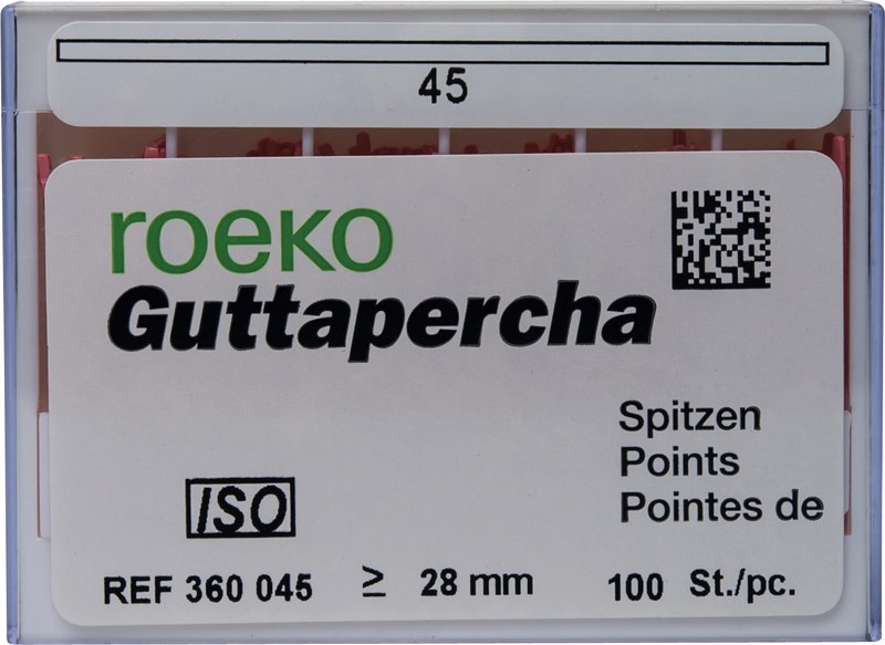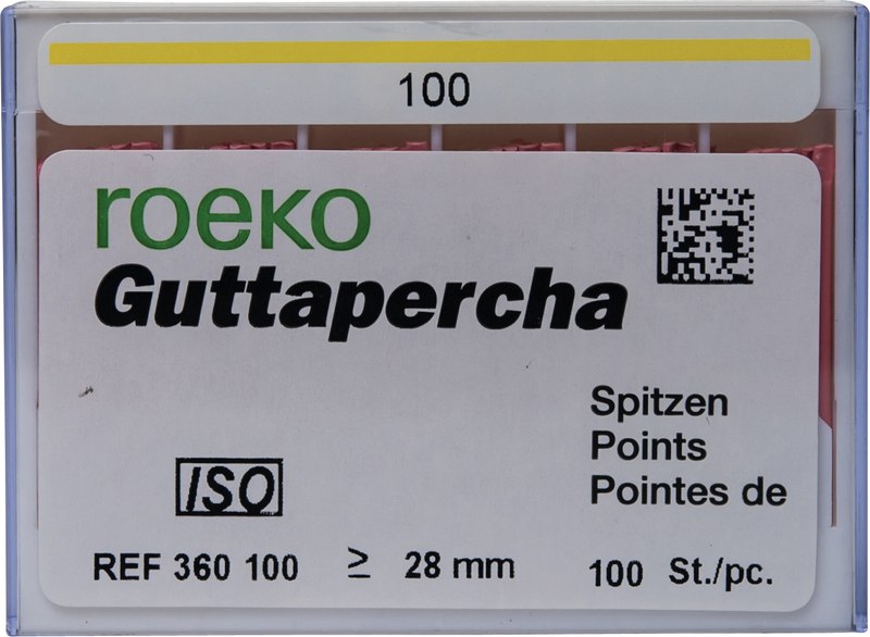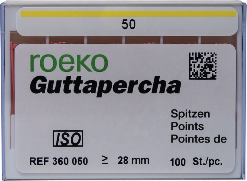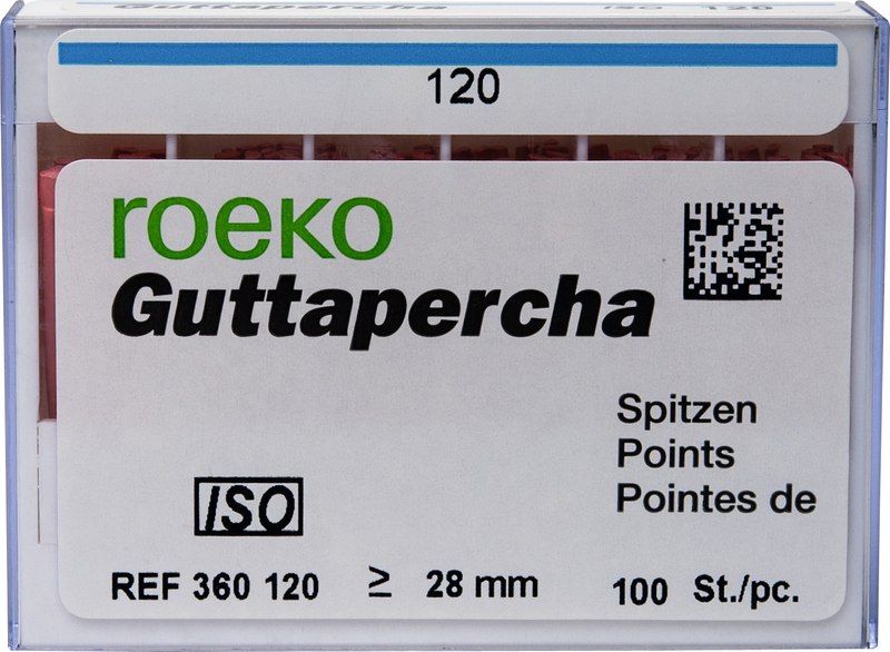 roeko Guttapercha Spitzen sind ideal für laterale, vertikale und Wärme-Kondensationstechniken für eine perfekte dreidimensionale Füllung des Wurzelkanals. Sie werden vollautomatisch hergestellt, sind absolut maßhaltig und einfach zu applizieren.