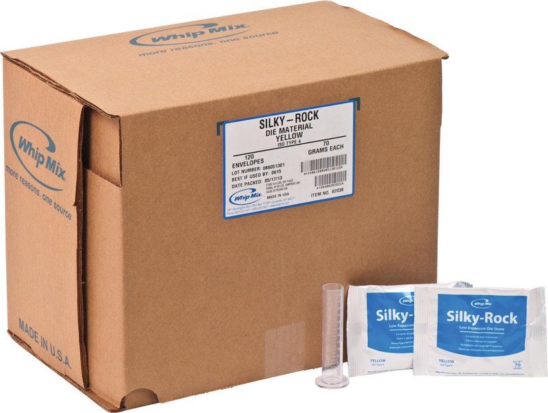 Silky-Rock ist durch seine niedrige Abbindeexpansion (0,09 %) hervorragend geeignet beim Herstellen von Meister- und Arbeitsmodellen, Gegenbissen, Diagnosemodellen und KFO-Modellen, also bei Arbeiten, bei denen Genauigkeit gefragt ist. Seine Verträglichkeit mit allen Abdruckmaterialien, sowie seine cremige Konsistenz ermöglichen eine leichte Handhabung. Durch seine außergewöhnliche Härte (90 MPa - trocken), seine hohe Abriebfestigkeit und die seidenglatte Oberfläche bietet Silky-Rock alles für ein leichtes Isolieren und Modellieren. Klasse 4.