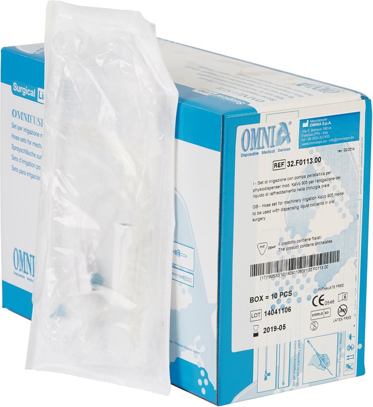 Sprayschlauchsysteme. Eine richtige Berieselung mit einer Kühlmittelflüssigkeit während der Positionierung des Implantats ist für dessen Einheilung und den damit verbunden Erfolg wichtig. Die mechanischen Irrigationssysteme von OMNIA sehen folgende Optionen vor: a. Monoirrigation innen b. Monoirrigation außen c. Innen- und Außenirrigation Das praktische Endstück erleichtert das Anschließen der Irrigationsleitung an das Handstück und erlaubt das Verbinden unserer Schläuchen mit allen Nadeln zum Kühlen der verschiedenen Handstücke, die häufig unterschiedliche Durchmesser haben.