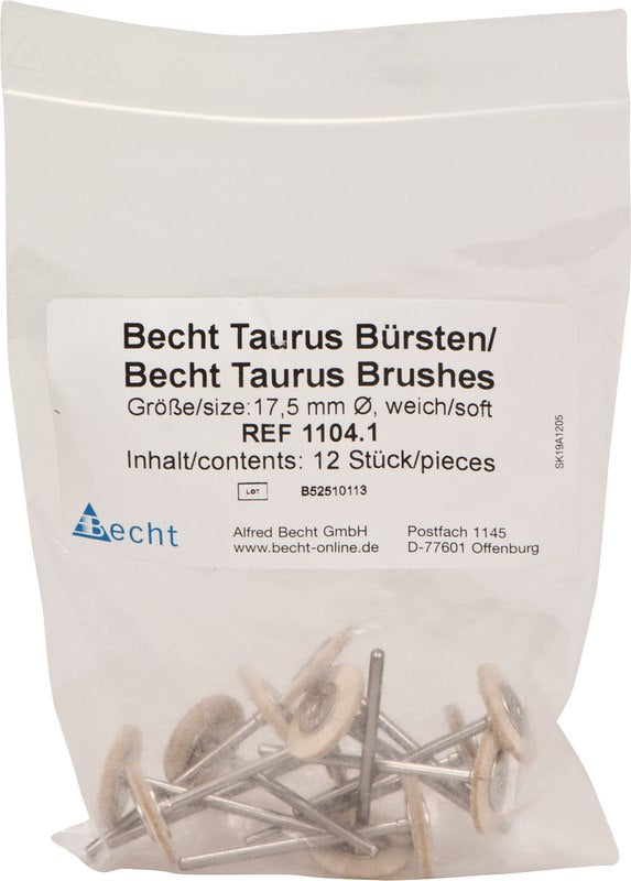 Universell einsetzbar für die Hochglanzpolitur von Metall, Edelmetall, Komposit und Keramik. Empfehlenswert für gezieltes Polieren bei Kunststoffrestaurationen. Idealer Pastenträger, z. B. Becht-Poliercreme, Diamantpaste. Montiert für Handstück. Empfohlene Umdrehungszahl: 16.000 U/min.