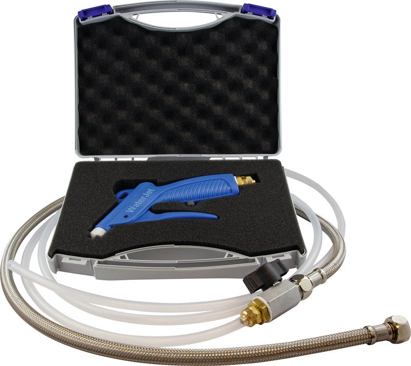 Die Spülvorrichtung „WaterJet“ mit integriertem Wasserdruckbegrenzer dient zum Vorspülen und ist reinigungsunterstützend vor der weiteren Aufbereitung von Außen- und Innenflächen zahnärztlicher Übertragungsinstrumente und des allgemeinen Instrumentariums.
