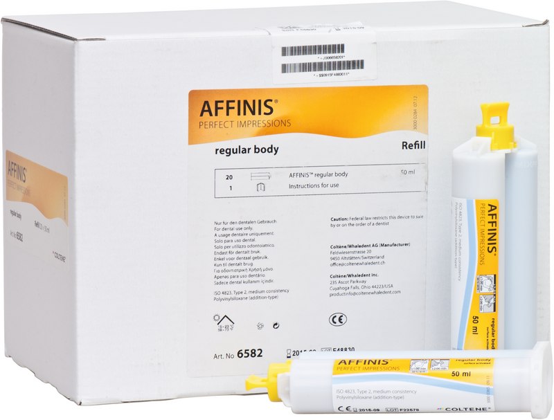 AFFINIS®-Korrekturmaterialien benetzen Zahn und Gingiva äußerst schnell und effektiv. Mit seiner hydrokolloidähnlichen Eigenschaft fließt das Korrekturmaterial ohne Druckeinwirkung selbst in engste Stellen ein. AFFINIS® weist aufgrund der strukturbrechenden Eigenschaften seines Tensidsystems einen sehr niedrigen Kontaktwinkel auf. Das angemischte Material hat eine ausreichende Standfestigkeit und tropft nicht vom Zahn.