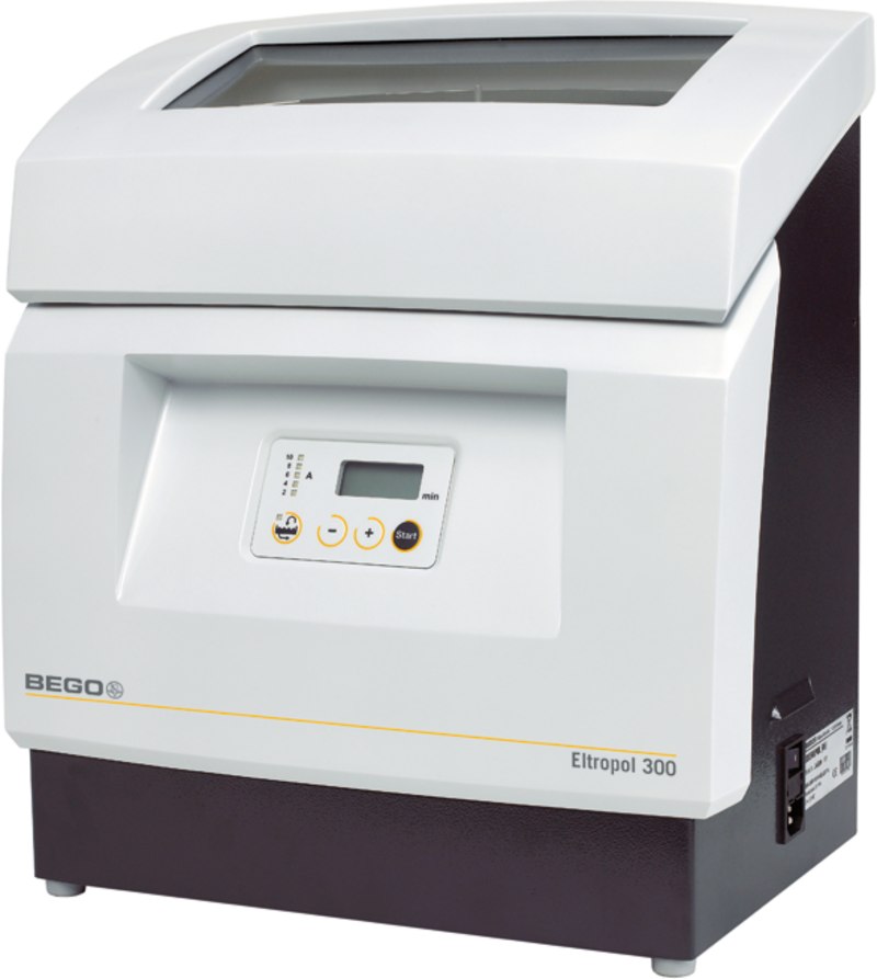 Große Zeitersparnis durch gleichzeitiges Glänzen von bis zu 2 Co-Cr-Modellgussbasen