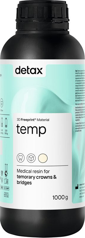 Lichthärtender, biokompatibler 3D Kunststoff zur generativen Herstellung von temporären Kronen & Brücken. Für alle LED/UV Drucker mit Lichtspektrum 378-388 nm. Außergewöhnliche Bruch- und Biegefestigkeit, hohe Abrasionsfestigkeit. Natürliche Zahnästhetik, brillante transluzente Farben. Leichte Oberflächenbearbeitung und Politur, individuell charakterisierbar mit dem smartrepair® System oder Compositen. Niedrigviskos für geringeren Materialverbrauch und schnellere Reinigung. Mundbeständig, keine Geruchs- und Geschmacksirritationen. Farben: A1, A2, A3.