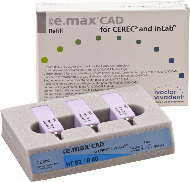 Die neue IPS e.max CAD-on-Technik vereint auf innovative Weise die Vorteile der Lithium-Disilikat-Glaskeramik (LS2) mit denjenigen von Zirkoniumoxid (ZrO2). Damit lassen sich dental oder implantatgetragene Brückenrestaurationen im Seitenzahnbereich (mit bis zu 4 Gliedern) mit herausragender Gesamtfestigkeit herstellen. Anwendbar bei inLab (Sirona). Hochfeste, monolithische LS2-Verblendstruktur. Innovativer, homogener Vollkeramik- Verbund. Effiziente Verarbeitung. Herausragende Gesamtfestigkeit der Restauration.