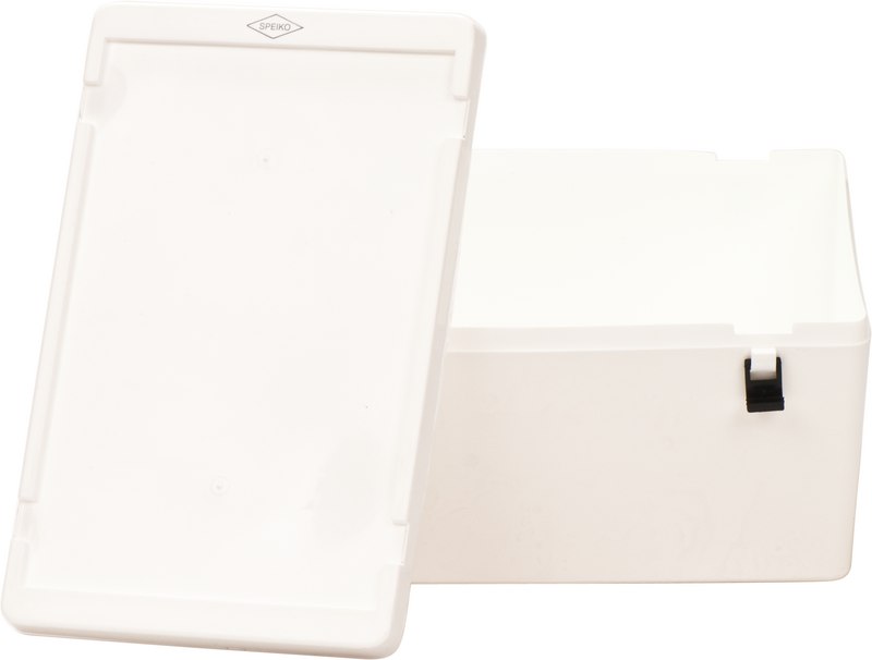 Eine sichere Sache, wenn es darum geht, Arbeitsunterlagen wie Abdrücke, Situationsmodelle und überhaupt alle prothetischen Arbeiten für den Transport zwischen Labor und Praxis sicher zu verpacken und rundum zu schützen. Ab einer Bestellmenge von 20 Containern (je Farbe und Größe) ist eine Prägung Ihres Logos auf einer Längsseite Ihrer Container möglich. Der Deckel wird durch Verschlußklemmen sicher gehalten und die Adresskarte kann auf dem Containerdeckel mit eingeklemmt werden. Der Container Größe 4 dient dem Transport von Arbeiten mit allen handelsüblichen Artikulatoren. Lieferbar mit oder ohne Tragegriff. Dazu lieferbar passende Schaumstoffnoppen.