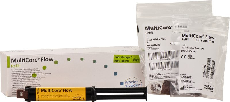 Selbsthärtendes, fließfähiges, röntgenopakes Stumpfaufbau-Composite mit optionaler Lichthärtung. Für den Stumpfaufbau unter Verwendung von Matrizen und für die Befestigung von Wurzelstiften aus faserverstärktem Composite.
