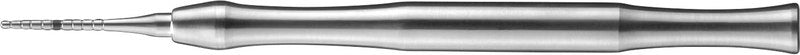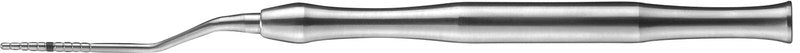 Gerade oder bajonettförmige Ausführung (gerade = für Front- und Seitenzahnbereich) (gebogen = für Molarenbereich). Konvexes und stumpfes Arbeitsende. Verschiedene Breiten mit konisch und konvex zulaufendem Arbeitsteil - die unterschiedlichen Breiten sind so aufeinander abgestimmt, dass die breiteste Stelle (schwarze Markierung) am Arbeitsende, dem Durchmesser des darauffolgenden Instrumentes an der Arbeitsspitze entspricht. Hierdurch ist eine kontinuierliche Erweiterung der Knochenkavität gewährleistet. Darüberhinaus lässt sich eine gute Verdichtung spongiöser Knochenstrukturen (insbesondere bei weichem Knochen der Konsistenz D3-D4 und D5) zur Verbesserung der Primärstabilität herstellen.
