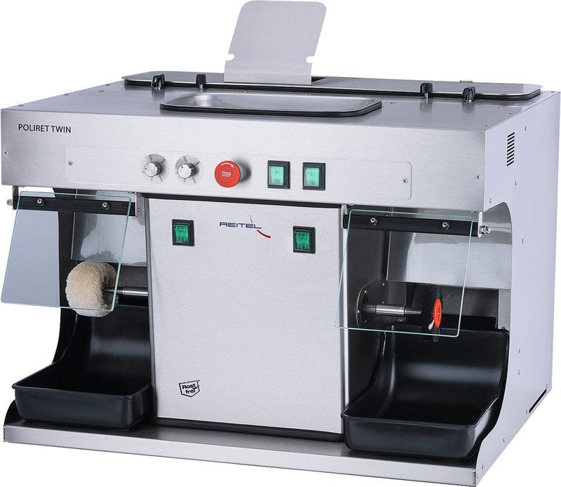 POLIRET TWIN verfügt über zwei getrennte und separat in der Drehzahl stufenlos regelbare Antriebsmotoren mit Motoreinheiten von je 370 Watt, die für den Dauereinsatz konzipiert sind. Dadurch ist gleichzeitiges Arbeiten unterschiedlichster Art an ein und demselben Gerät möglich. Auch in Punkto Sicherheit absolut zukunftsweisend: die unbenutzte Spindel steht still – dadurch wird die Unfallgefahr wesentlich verringert. Um REITEL Poliereinheiten in ein ergonomisch abgerundetes System zu verwandeln, bietet sich der motorisch gesteuerte, stufenlos höhenverstellbare Vario Hubtisch an.