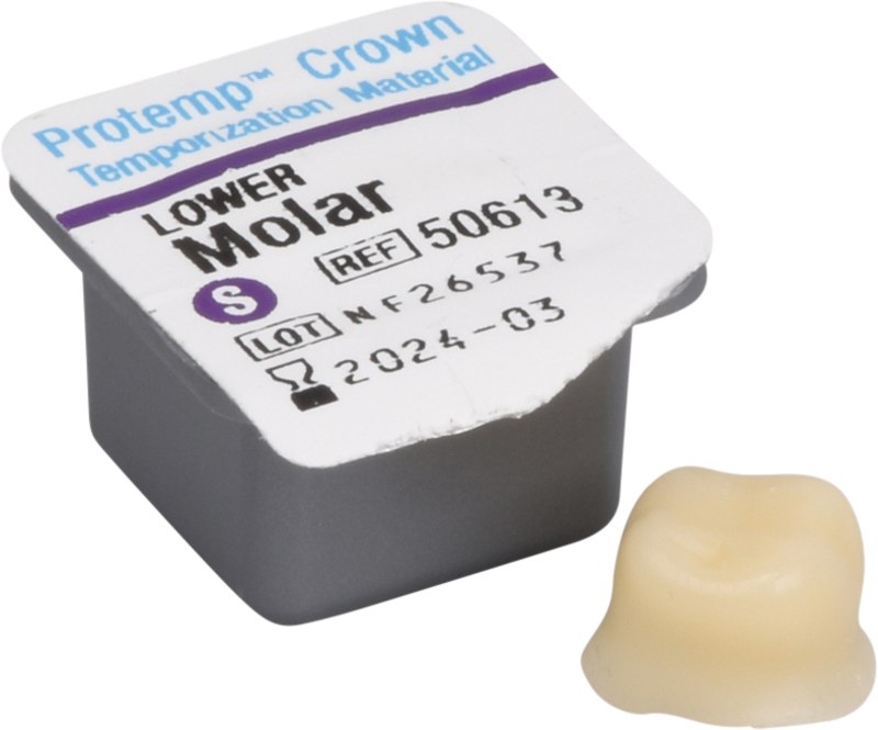 Protemp™ Crown Temporäre Krone ist die weltweit erste vorgefertigte und formbare Krone und ermöglicht die Erstellung einer provisorischen Einzelzahn-Krone in 4 Minuten oder auch weniger. Damit arbeiten Sie bis zu zweimal schneller als mit einem Automix- oder Pulver-Flüssigkeits-System.