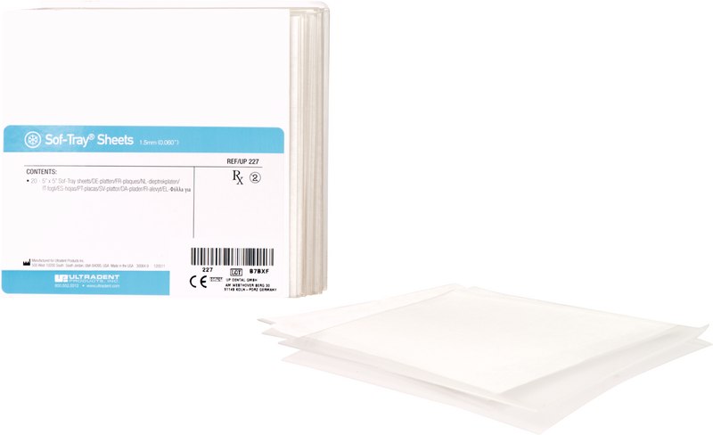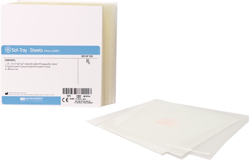 Extrem flexibel, besonders geeignet für Bleaching-Schienen. Farbe klar, quadratisch, 127 x 127 mm. Für deutsche Tiefziehgeräte, die runde Folien benötigen, leicht mit einer Schere zuzuschneiden.