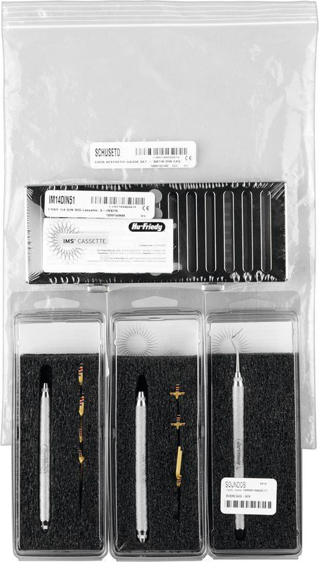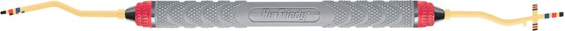 Die T-Bar-Spitze verfügt über einen vertikalen und einen horizontalen Bogen. Die Inline-Spitze verfügt über einen kurzen und langen vertikalen Bogen. Die BLPG-Spitze verfügt über vordefinierte Abmessungen. Die Papillen-Spitze hat vordefinierte Abmessungen. Die Messsonde dient der Bestimmung der Sulkustiefe sowie der Lage des mediofazialen und des interproximalen Knochenkamms. Bei den Kunststoffspitzen handelt es sich um auswechselbare Teile.