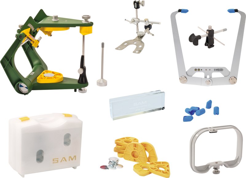 SAM® SE Artikulator „Special Edition“ (Hochleistungskunststoff aus der Flugzeug- und Automobilindustrie) mit einer fest eingebauten Curvatur 1 und Bennettführung mit normaler Sideshift, Inzisaltisch plan (ART 275).