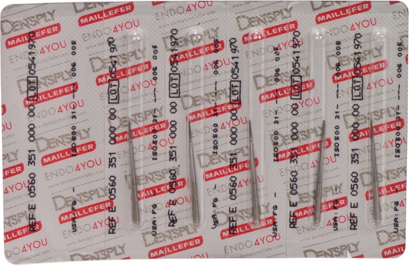 Spezialbohrer nach Dr. Zekrya mit verlängertem Hals, aktiver Teil konisch, oval und an der Spitze schneidend. Für die Resektion und das Lösen von feinen gebrochenen Wurzeln. Durchmesser 0,5mm.