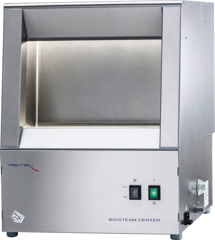 BIOSTEAM CENTER schützen Sie Ihre Gesundheit und Umwelt. Der Systemarbeitsplatz saugt störende Umgebungseinflüsse wie Dampf- und Schmutznebel beim Abdampfen Ihrer Ausarbeitungen ab. Der eingebaute Spezial-Kondensationsfilter lässt Dämpfe kondensieren und fängt Klebewachse und andere Verunreinigungen auf. Die Filtereinheit und das Absorbervlies sind durch wenige Handgriffe auswechselbar. Die darin gebundene Verschmutzung wird einfach entsorgt.