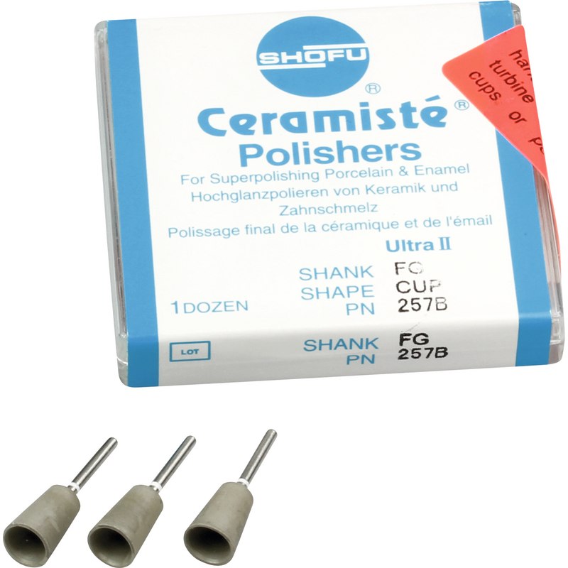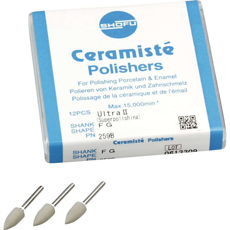 Die Silikon-Systempolierer wurden speziell für die Politur von Keramik und Zahnschmelz entwickelt. Mit Ceramisté Standard, Ceramisté Ultra und Ceramisté Ultra II stehen Instrumente für jede Polierstufe bis zum Hochglanz zur Verfügung.