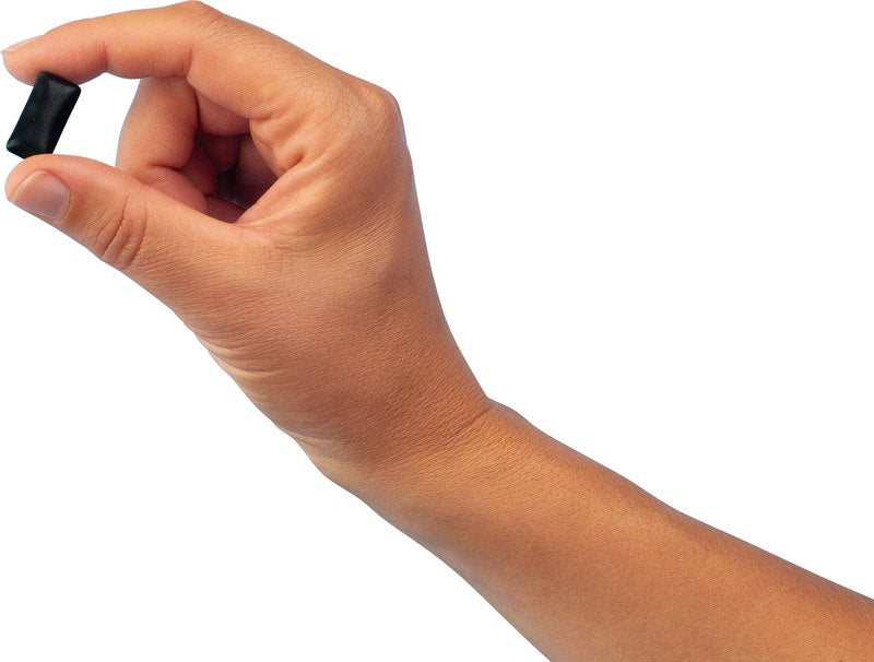 Mundgesundheit durch Kauen: Der «Black Is White»-Chewing Gum macht Zähne weiss dank Aktivkohle. Weitere wertvolle Inhaltsstoffe unterstützen die Mundhygiene und schützen vor Karies. Kräftig Lifestyle also, krass mundgesund, typisch Curaprox. Erfrischend! Limonig-minzig, nicht zu wenig, gerade richtig!
