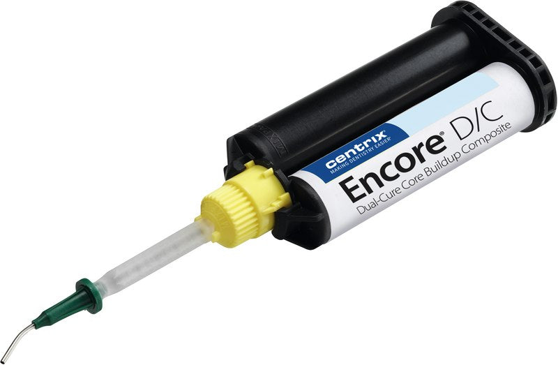 Encore D/C ist ein dualhärtendes Komposit-Stumpfaufbaumaterial in einer Automix-Kartusche. Erhältlich mit Fluoridabgabe und in natürlichen sowie in Kontrastfarben.