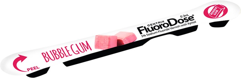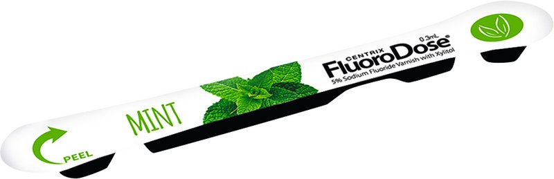 FluoroDose® enthält einen 5 %igen weißen Natriumfluorid-Kavitätenlack in der LolliPack -Einwegpackung, die maximal zulässige Fluoriddosis, und ist von der FDA für die Behandlung von Dentinüberempfindlichkeit zugelassen. Keine schmierenden Gele und unbequemen Löffel mehr; keine Angst mehr vor dem Verschlucken von Fluorid. Eintauchen. Mischen. Auftragen. Wegwerfen. Centrix macht die Fluoridlackierung sicherer und das Reinigen einfacher.