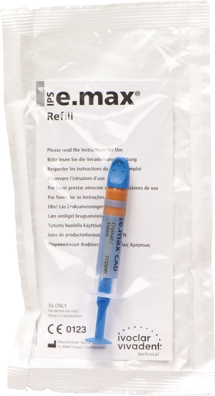 IPS e.max CAD Crystall./Shades/Stains und Glaze ist das universelle Malfarben- und Glasursortiment für IPS e.max CAD, IPS e.max ZirCAD und IPS Empress CAD für die Anwendung in der Zahnarztpraxis. IPS e.max CAD Crystall./Shades sind pastenförmige Dentin-Malfarben, die optimal auf die Verarbeitung der CAD/CAM-Materialien abgestimmt sind. Die pastenförmigen Intensiv-Malfarben IPS e.max CAD Crystall./Stains sind für die Nachahmung natürlicher Charakteristiken geeignet. Die Glasur ist mit und ohne Fluoreszenz-Effekt erhältlich. Geringfügige Korrekturen bei IPS e.max CAD- und IPS e.max ZirCAD-Restaurationen (z. B. an approximalen Kontaktpunkten) können mit IPS e.max CAD Crystall./Add-On gemacht werden.