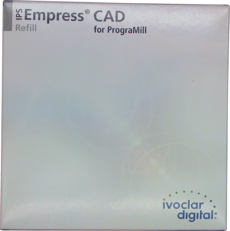 IPS Empress® CAD sind bewährte Leuzit-Glaskeramik-Blöcke für die effiziente CAD/CAM-Herstellung vollkeramischer Einzelzahnrestaurationen. Neben Blöcken mit hoher und mittlerer Transluzenz gibt es polychromatische Multi-Blöcke mit natürlichem Farb- und Fluoreszenzverlauf, die keine Charakterisierung erfordern. Nach dem Nassschleifen in einer PrograMill CAD/CAM-Maschine wird die Glaskeramik mit ihren brillanten lichtoptischen Eigenschaften (Biegefestigkeit 185 MPa*) lediglich poliert. Alternativ können IPS Empress® CAD - Restaurationen mit Malfarben charakterisiert oder mit Schichtmassen verblendet werden.