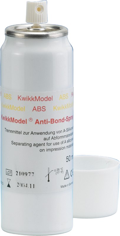 Trenn- und Isolationsspray, um vorgelegte Abformungen aus unterschiedlichen Materialien mit den A-Silikonen KwikkModel fluid und KwikkModel base (KwikkModel nature) oder KwikkModel SCAN ausgießen zu können, um dann Modelle von Kavitäten und Zähnen herzustellen