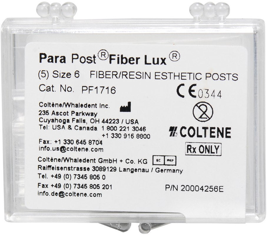 ParaPost® FIBER LUX stellt eine Alternative zu Metallstiften dar, wenn ästhetisch anspruchsvolle, metallfreie Restaurationen gewünscht sind. ParaPost® FIBER LUX besteht aus transluzentem Fiberglasmaterial, das die natürliche Zahnfarbe widerspiegelt und somit eine Schattenbildung am Gingivalsaum verhindert. Der hohe Anteil parallel verlaufender Glasfaserbündel sorgt für eine hervorragende Verstärkung der Stiftstruktur, ohne die Flexibilität zu beeinträchtigen.