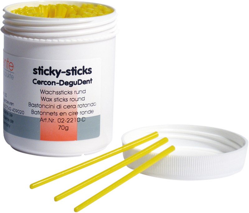 Rund oder quadratisch? Das müssen Sie entscheiden. Wie auch immer, das spezielle, harte und klebrige Wachs der sticky-sticks erleichtert das Anstiften und verhindert den Verzug des Gußobjekts beim Abheben der Modellation vom Modell.