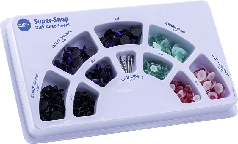 Poliersystem für Microfill/Composite Füllungen. Vier Körnungen ermöglichen eine perfekte Politur vom Konturieren bis zum Hochglanzpolieren. Die beschichteten Polierscheiben sind extrem dünn und hochflexibel. Sie sind auf weichen, elastischen Trägern befestigt, die einfach auf das Mandrell aufgesetzt werden. Konturieren, Finieren und Polieren bis zum Hochglanz von Komposit-Restaurationen.