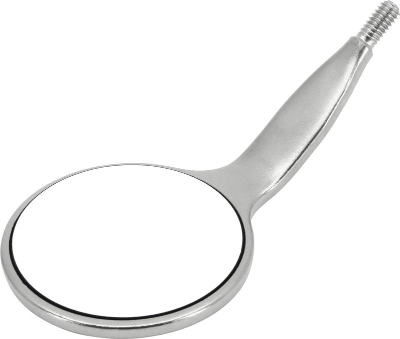 Der neue einzigartige Aufbau der reflektierenden Schichten bietet ein unübertroffen helles Spiegelbild. Kristall klar, exakt scharf und kontrastreich für höchsten Seh-Komfort. Der flache, aber breit ausgeformte Stiel optimiert das Abhalten und die seidenmattierten Edelstahlflächen verhindern unerwünschte Reflektionen. Die retract-Ausführung haben einen extra breiten Stiel.