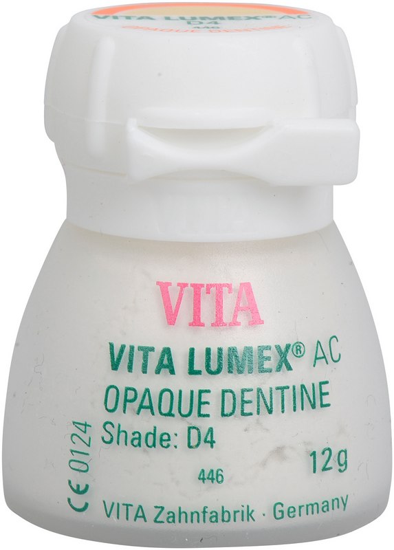 VITA LUMEX® AC ist ein leuzitverstärktes, glaskeramisches Verblendsystem mit innovativer Materialformel für farbtreue, lebendige und verlässliche Ergebnisse. VITA LUMEX AC® umfasst GINGIVA-, OPAQUE-, OPAQUE DENTINE-, DENTINE- und ENAMEL-Massen sowie vielfältige Effektmassen (z. B. OPAL TRANSLUCENT, FLUO INTENSE u.v.m.). Ideal abgestimmte Systemkompnenten wie Pinsel, Brenngutträger, Glasurmasse etc.. Vorteile