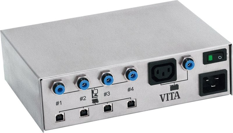 VITA MultiPump wird an der VITA Vakuumpumpe montiert und dient anschließend als Verteiler der Vakuumleistung der VITA Vakuumpumpe auf die angeschlossenen Öfen. Für den Betrieb der