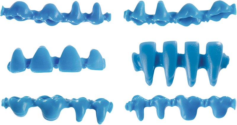 Die Form unserer Zwischenglieder entspricht einer gleichmäßigen Reduzierung natürlicher Zähne. Da es alle Zwischenglieder nur in einer Größe gibt, wurde diese so gewählt, dass sie in 90 % der Anwendungen passen.